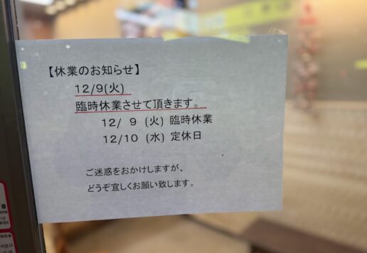 12/21(水)より休業しておりましたが、12/29(木)より営業を再開いたします。 休業中はご迷惑をおかけして申し訳ありませんでした。 年末年始の営業は以下の通りです。 12/29(木) 通常営業 12/30(金) ...