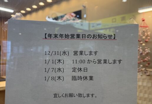 【年末年始営業日のお知らせ】